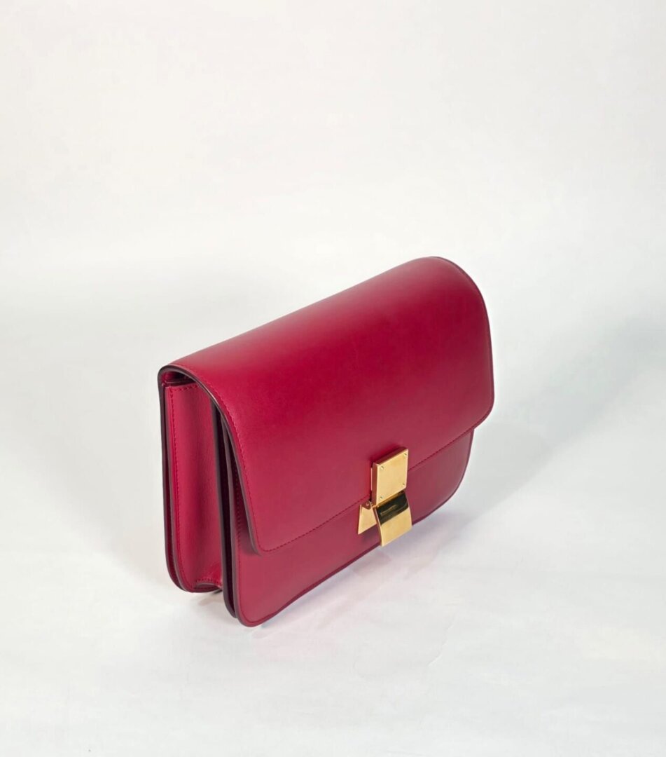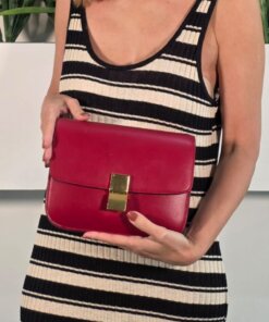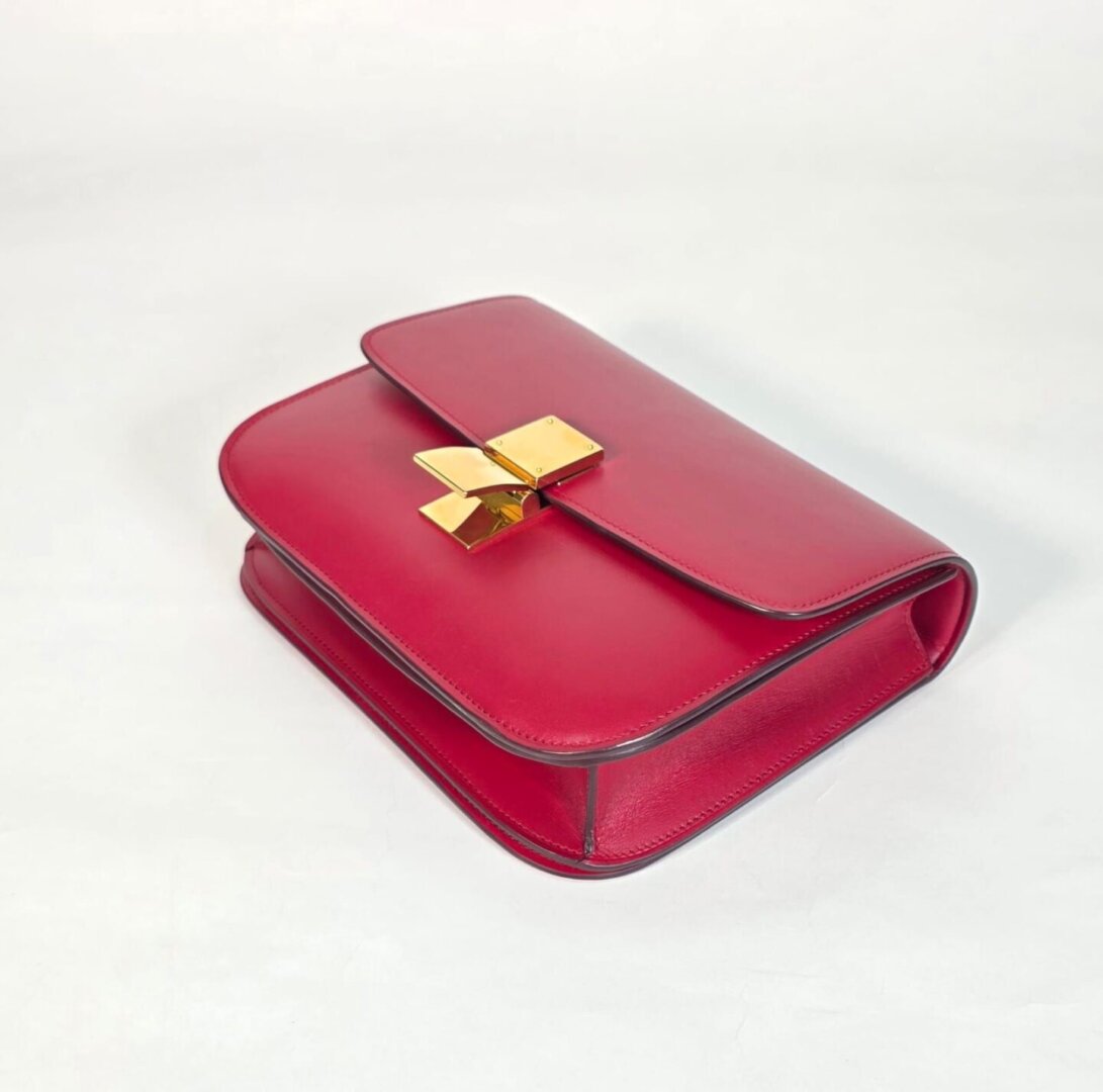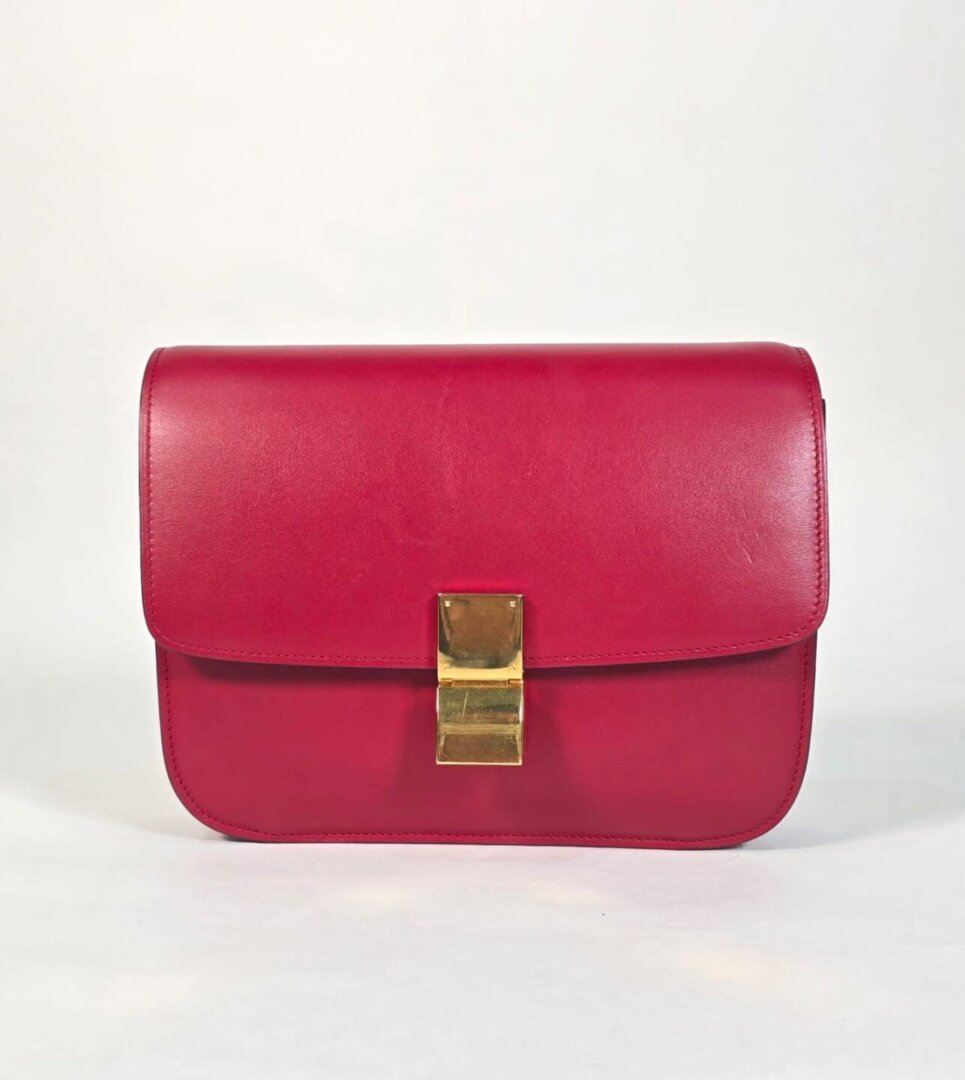 The coveted Celine Classic Box Bag in medium size, crafted in striking Red Leather. Timeless minimalism and luxury.