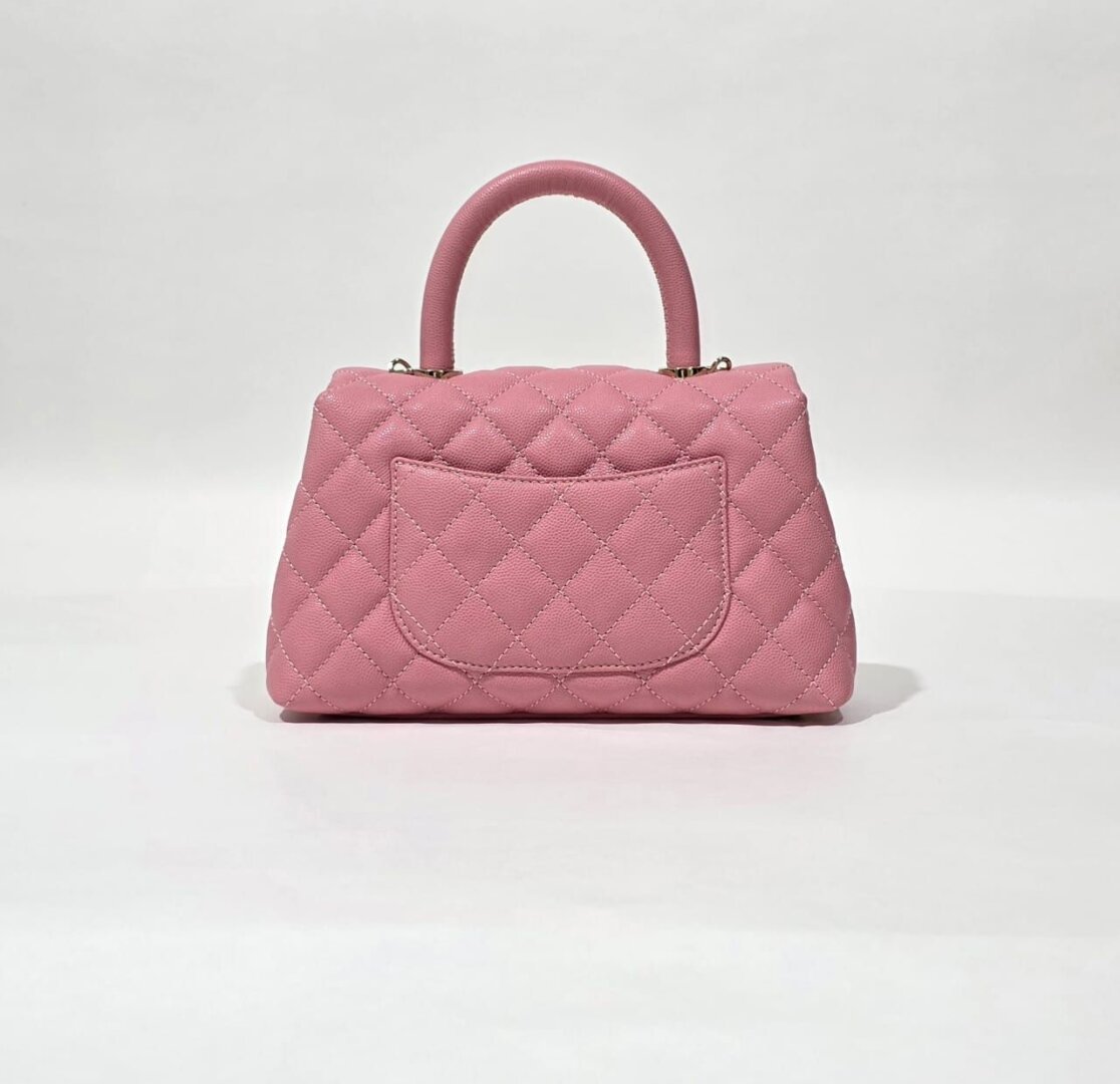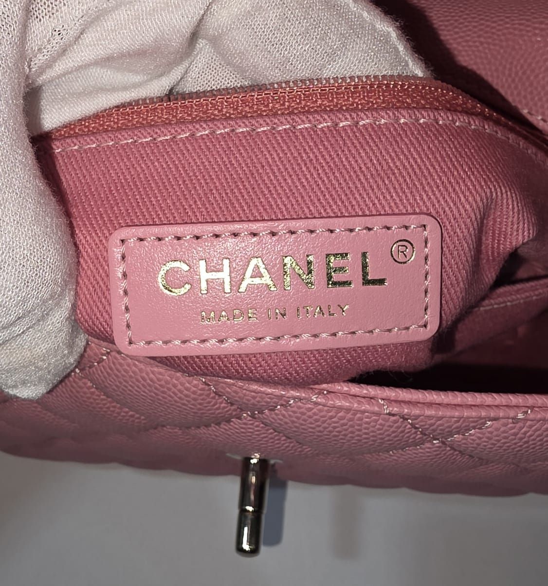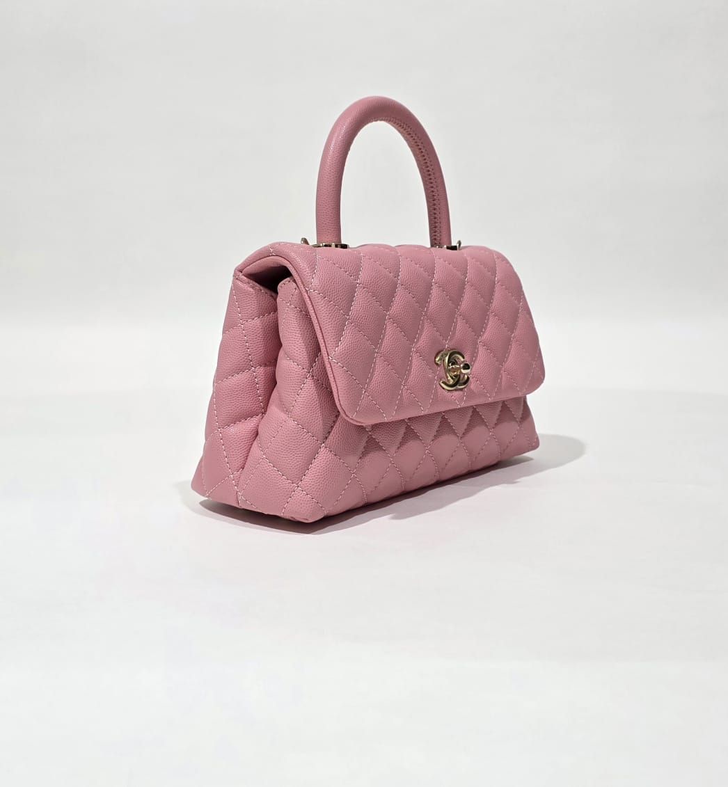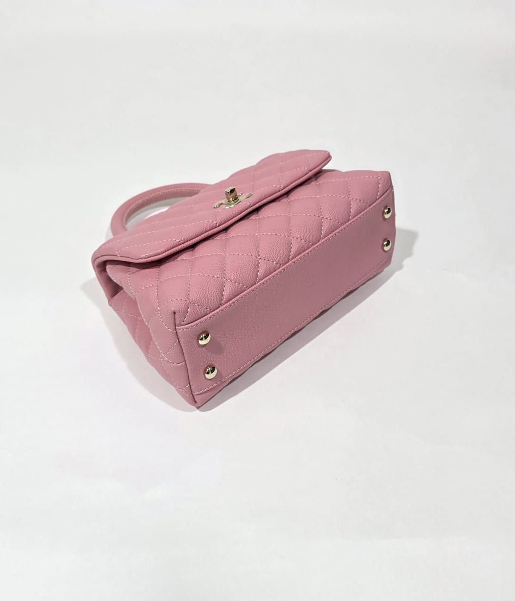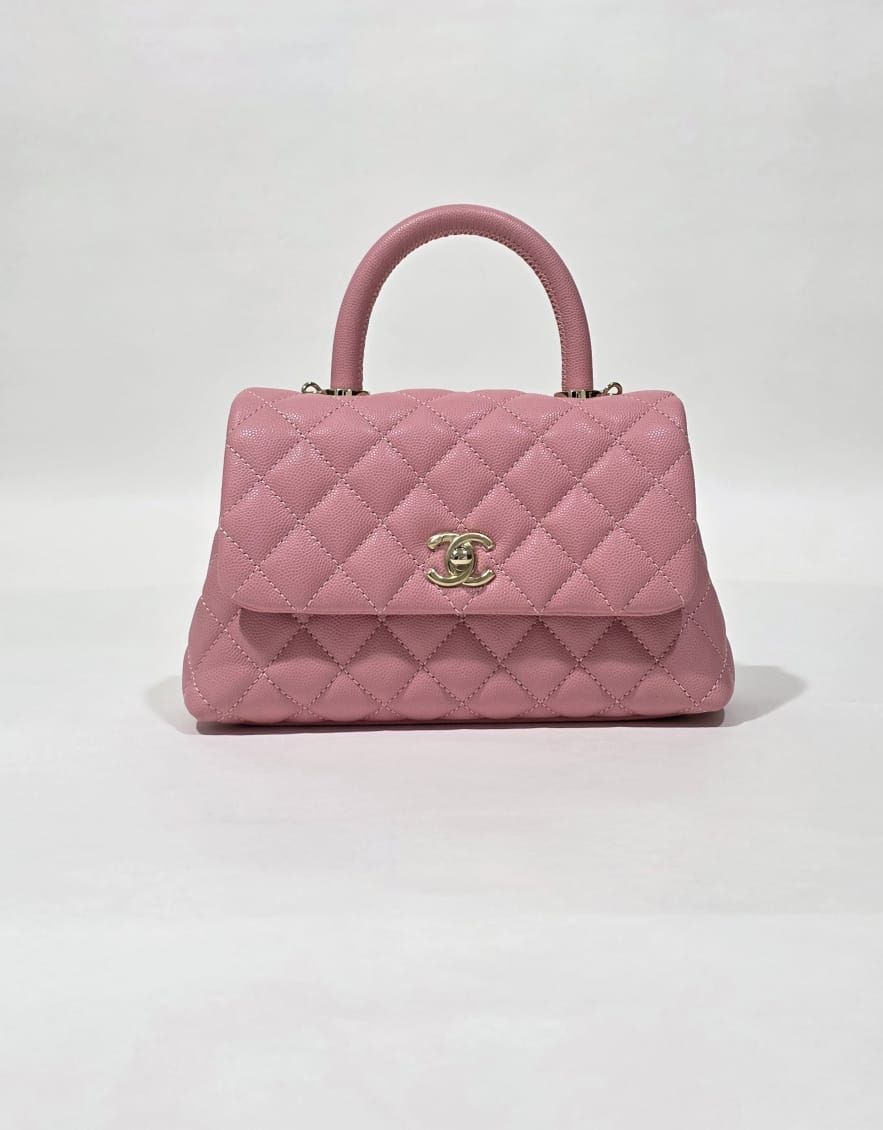 A stunning Chanel Small Coco Handle bag crafted from rich dark pink quilted caviar leather. The iconic CC turn-lock closure completes the design, opening to a practical interior that perfectly balances femininity, sophistication, and everyday functionality. A standout piece for any Chanel collection.