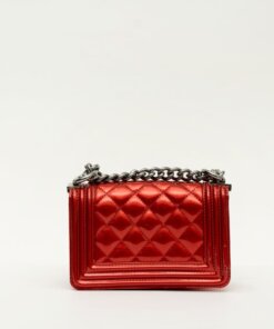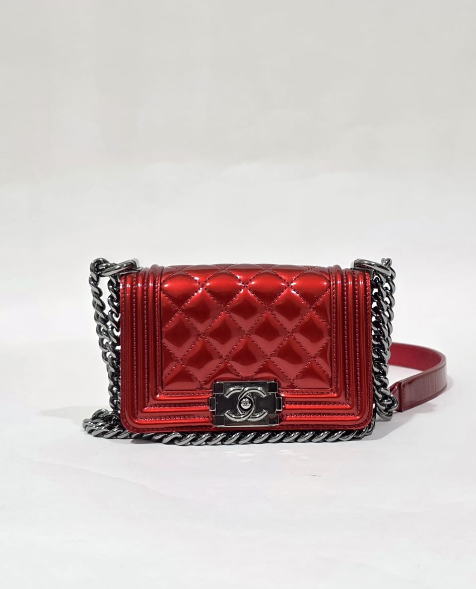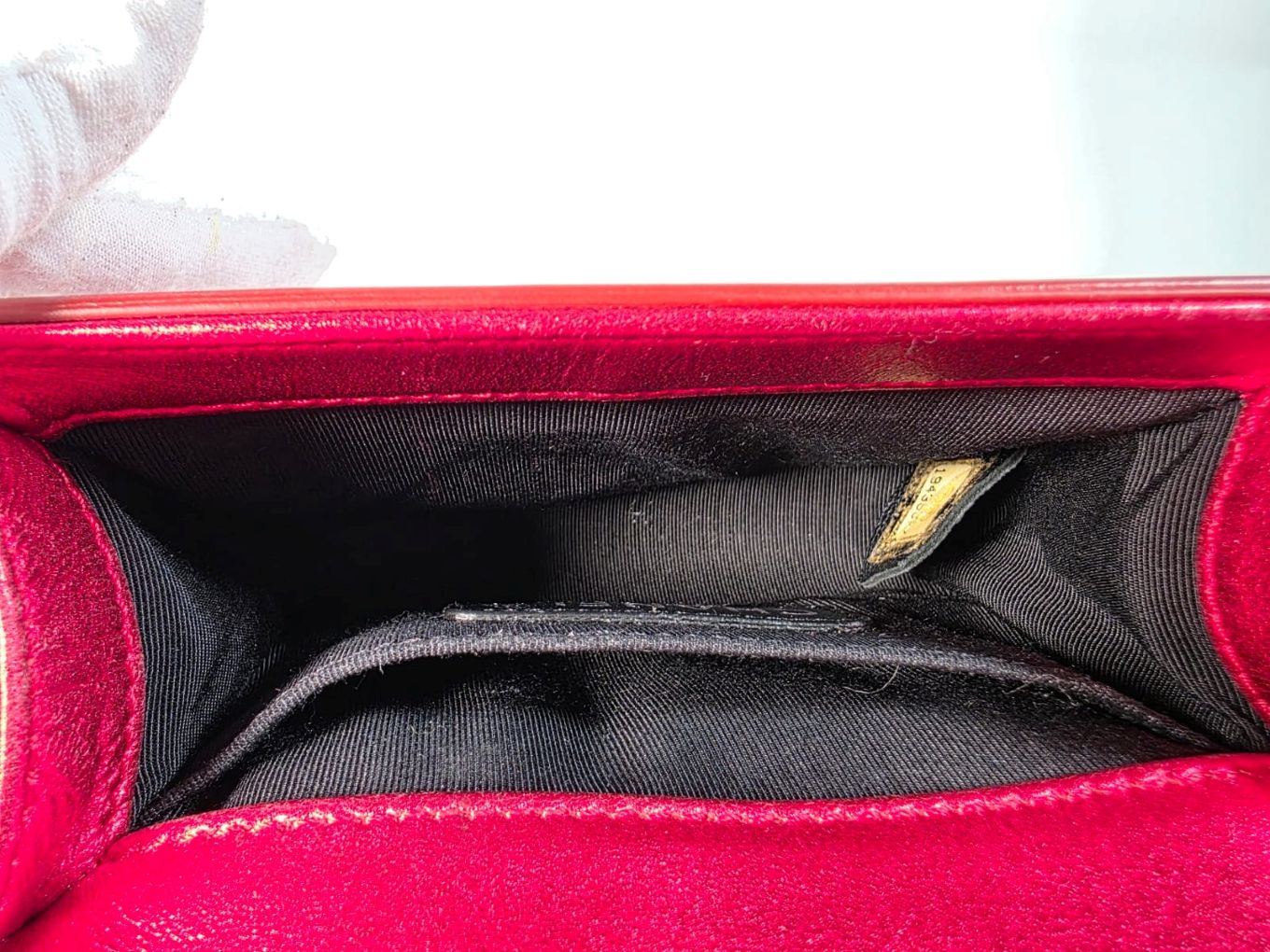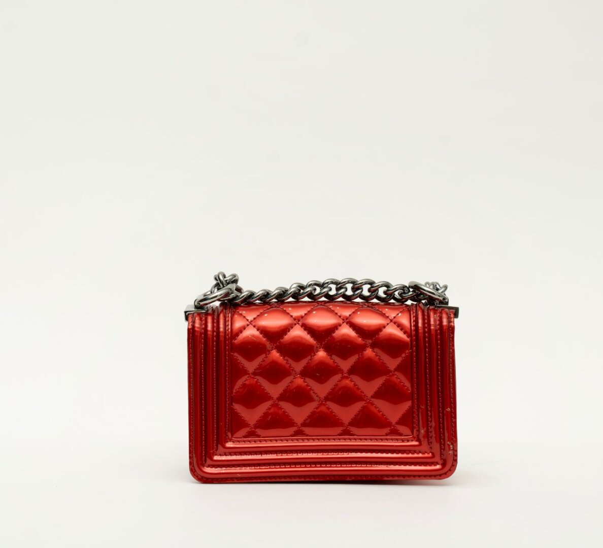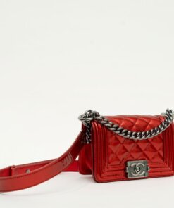 Description: Chanel Red Quilted Patent Leather Boy mini Bag