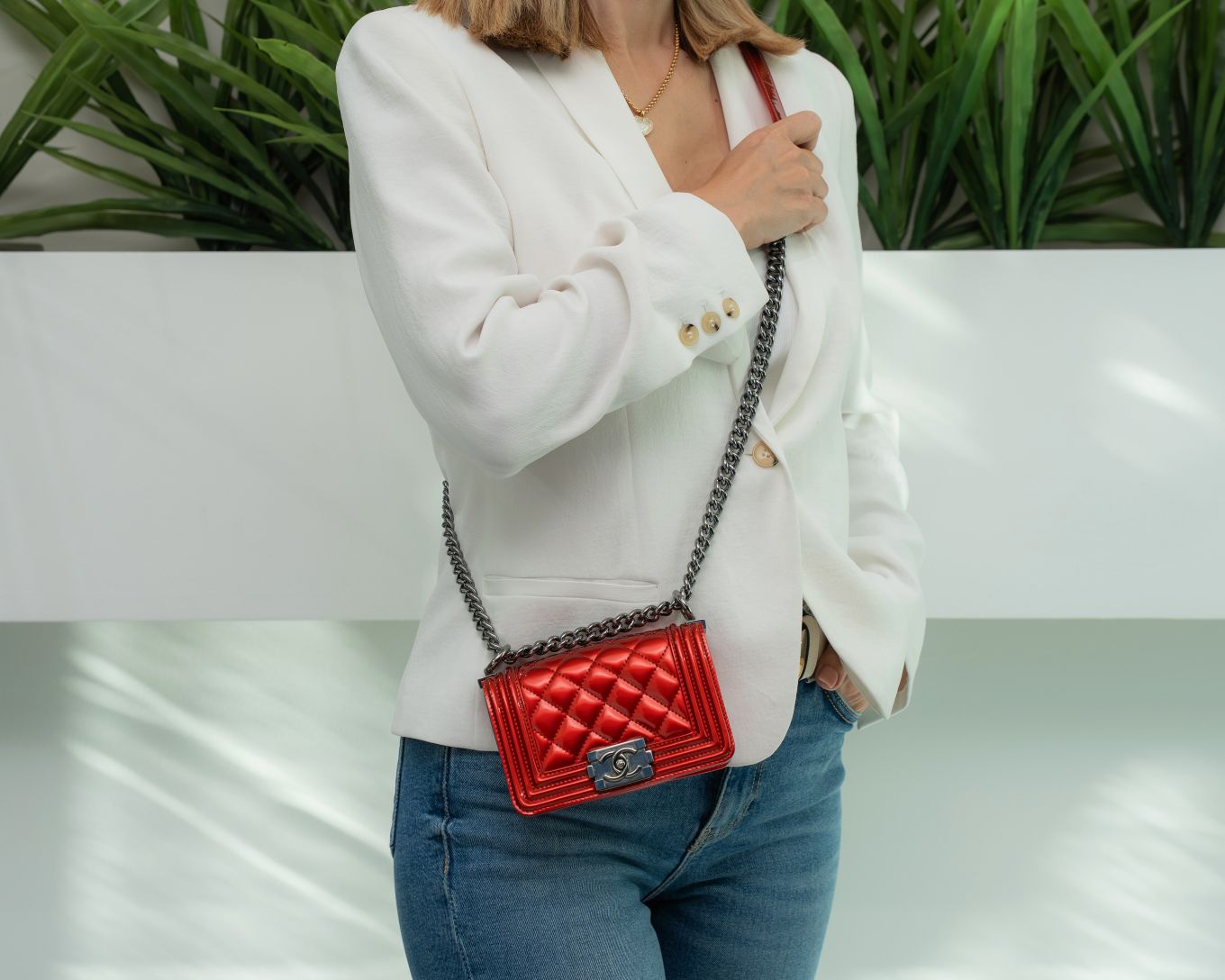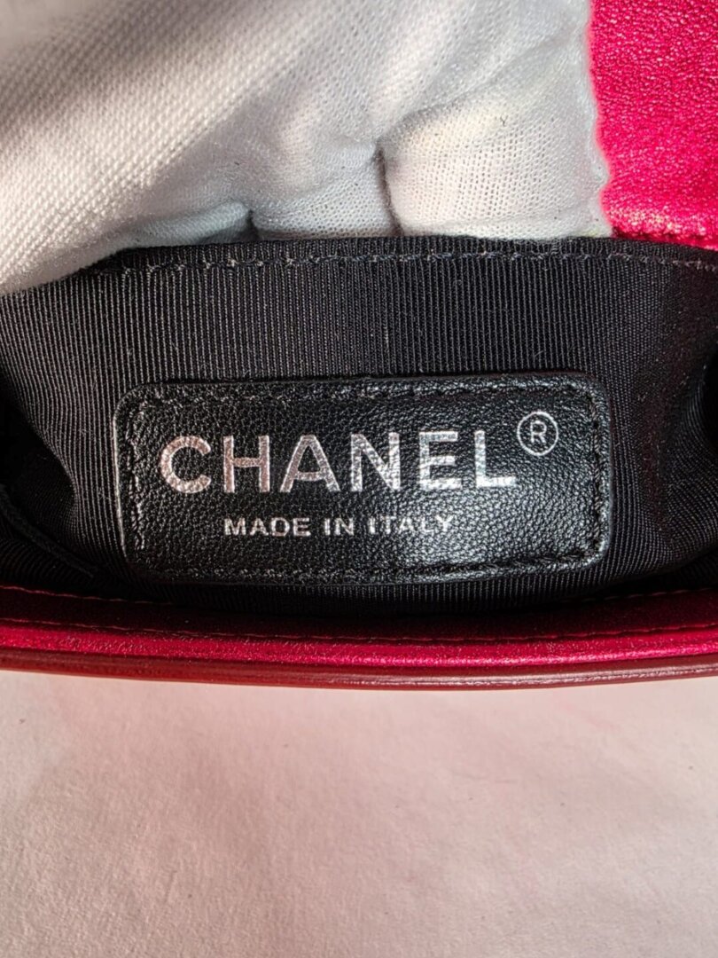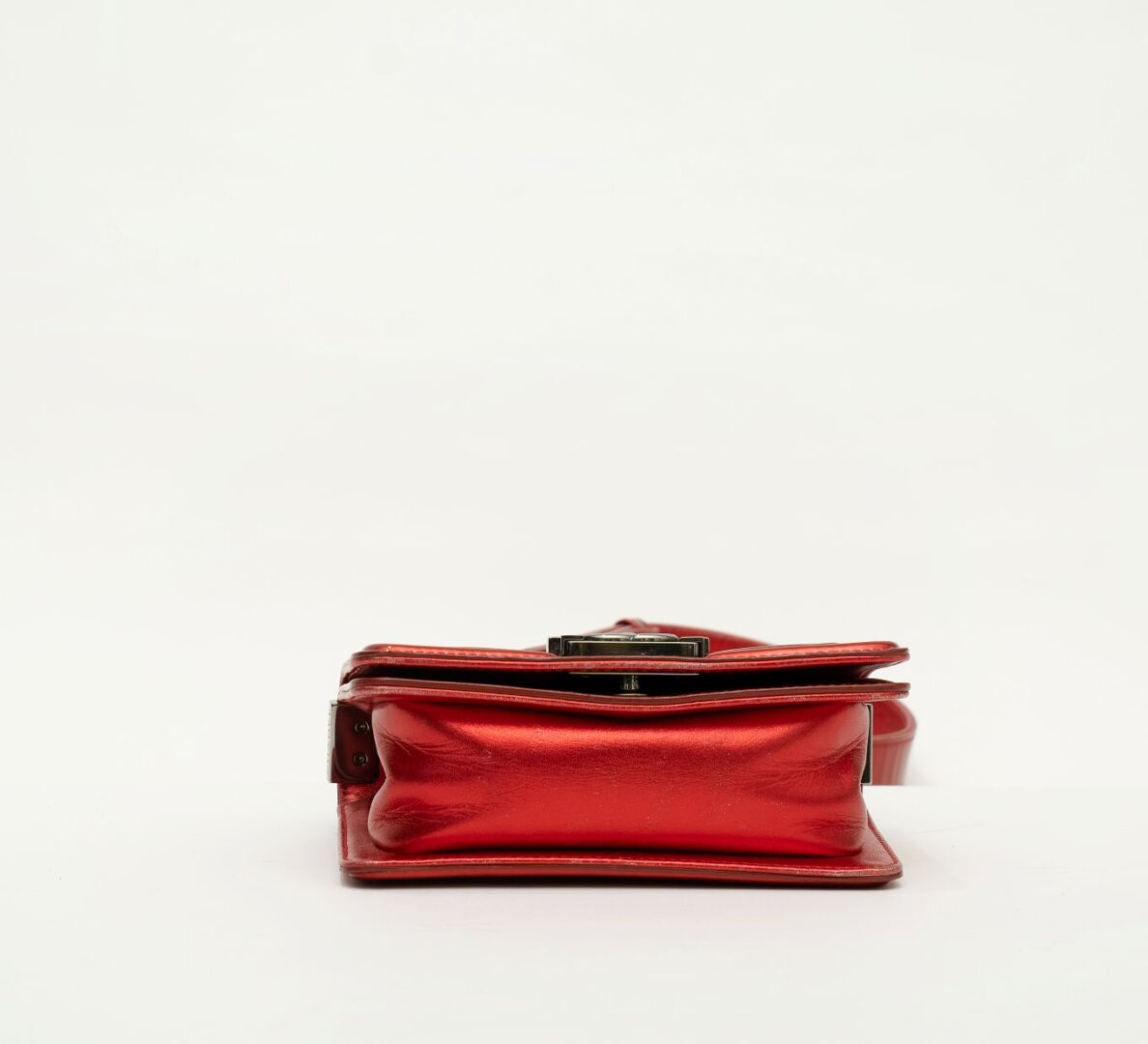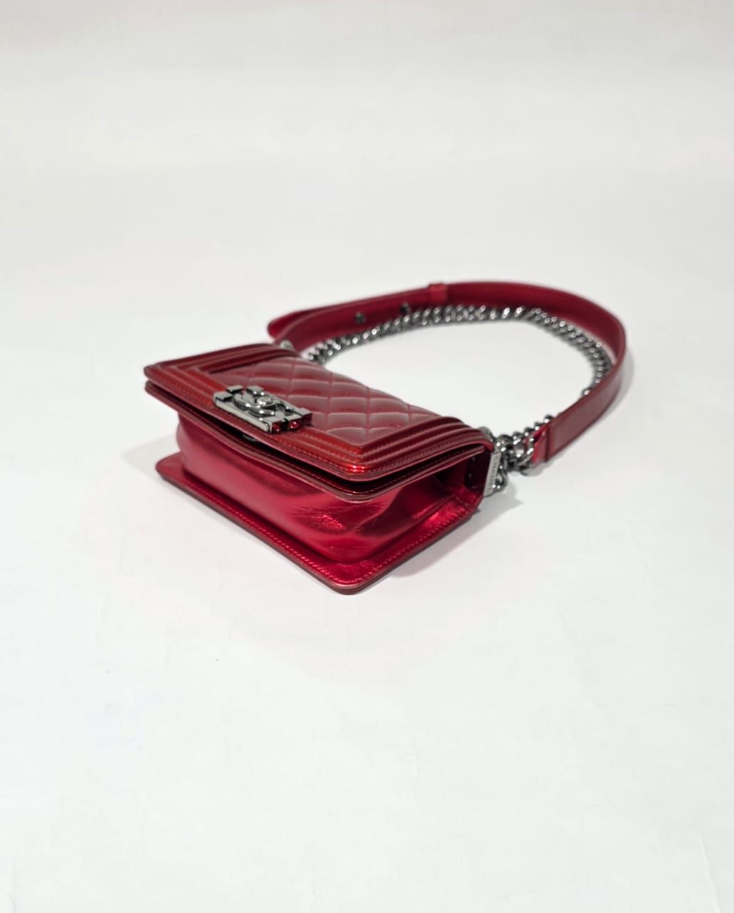 Description: Chanel Red Quilted Patent Leather Boy mini Bag