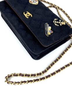 The Chanel WOC Charm Cloth is a limited edition Chanel bag made from the finest and warmest wool money can buy. The dark black color and the Gold-tone hardware elevate its classy look. The strap is an elegant chain-leather combo, and the bag’s surface has a selection of various Naval charms and designs that will surely attract any lovers of style. The interior is spacious enough to store all your essentials and opens up with a magnetic lock.