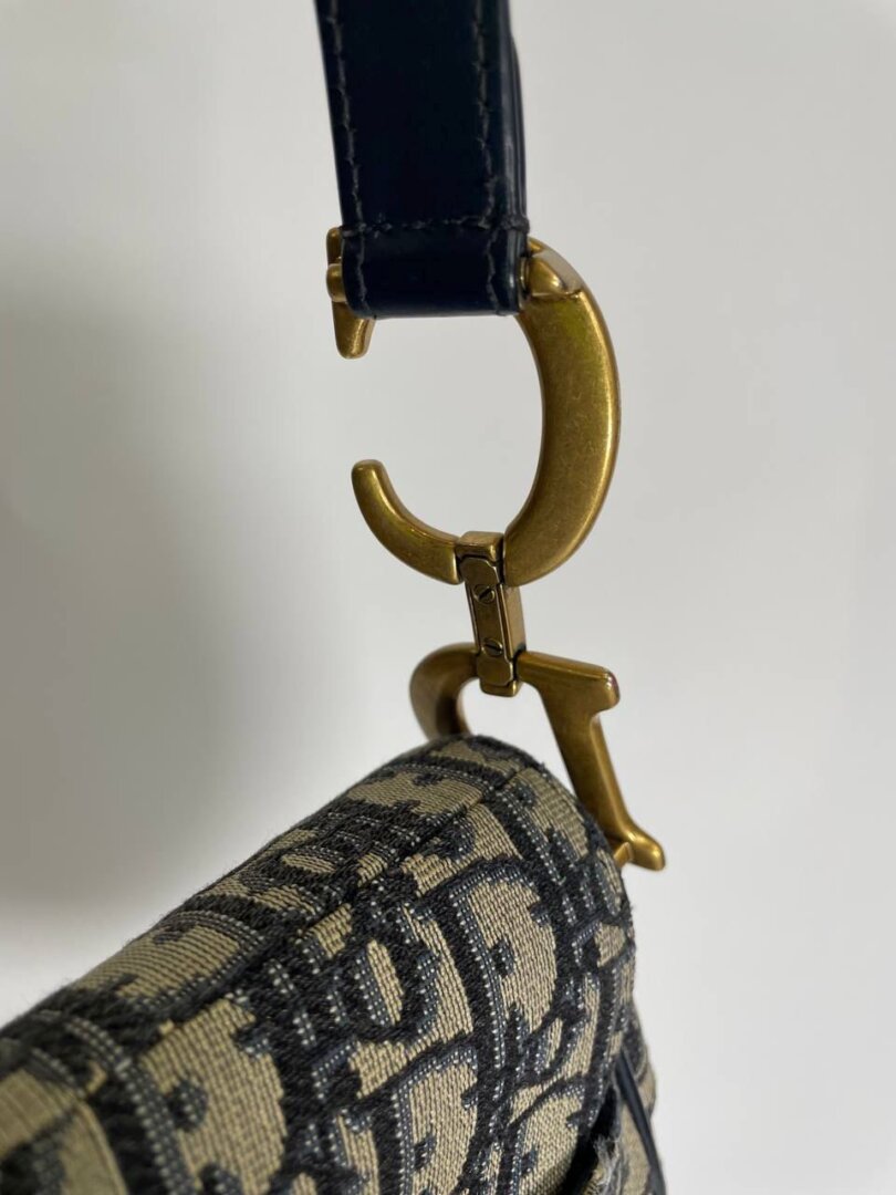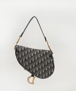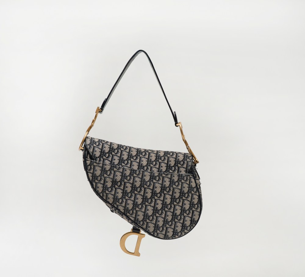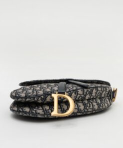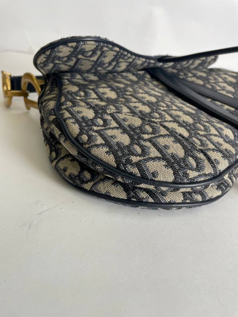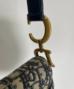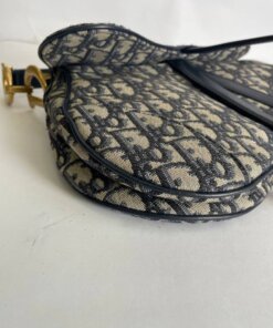 Description: Dior Oblique Canvas Saddle Navy Leather Bag
