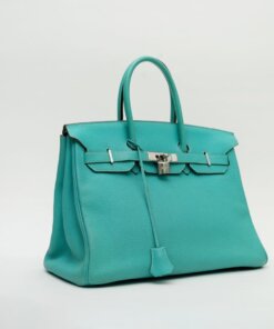 Description: Hermès Birkin 35 Menthe Green Clemence with Silver Hardware