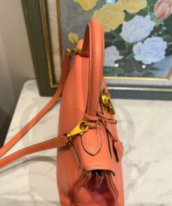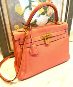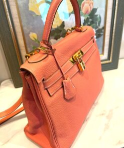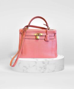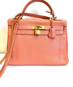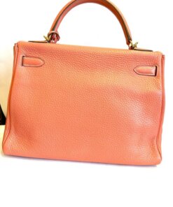 Buy the most authenticated Hermès Crevette Kelly 32 bag. A unique salmon/shrimp color for the true luxury collector.