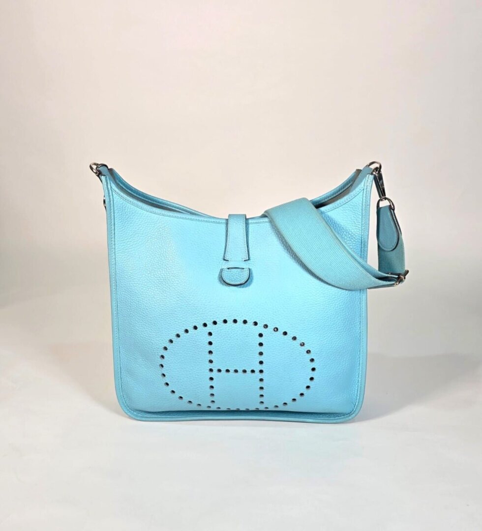 The Hermès Evelyne 33 in Bleu Jean is a timeless everyday classic, loved for its effortless style and practical design. With its signature perforated “H” logo, adjustable shoulder strap, and spacious interior, the Evelyne 33 offers the perfect balance of comfort, versatility, and Hermès craftsmanship. Ideal for daily wear, travel, or casual chic styling, this piece remains one of Hermès’ most sought-after crossbody bags.