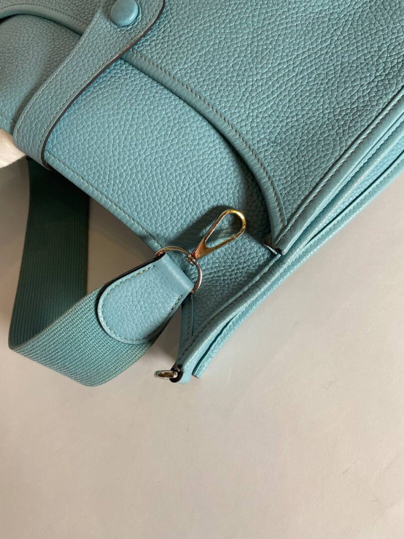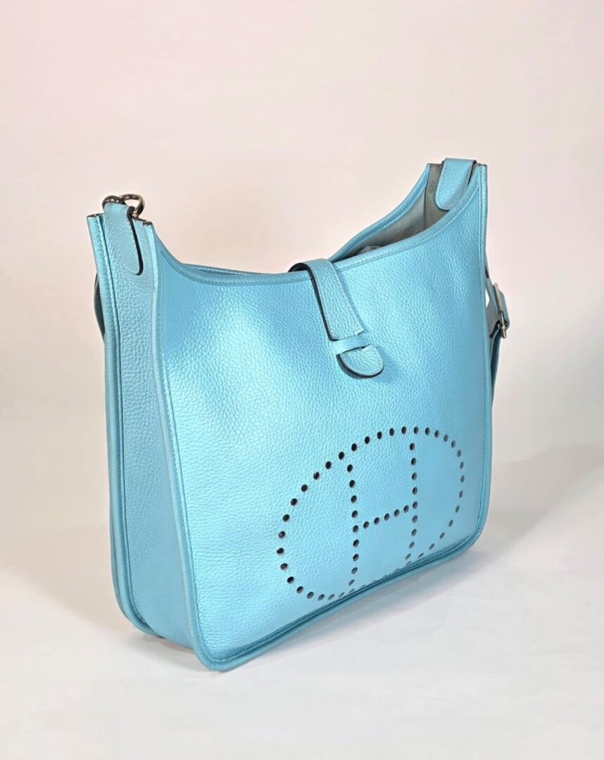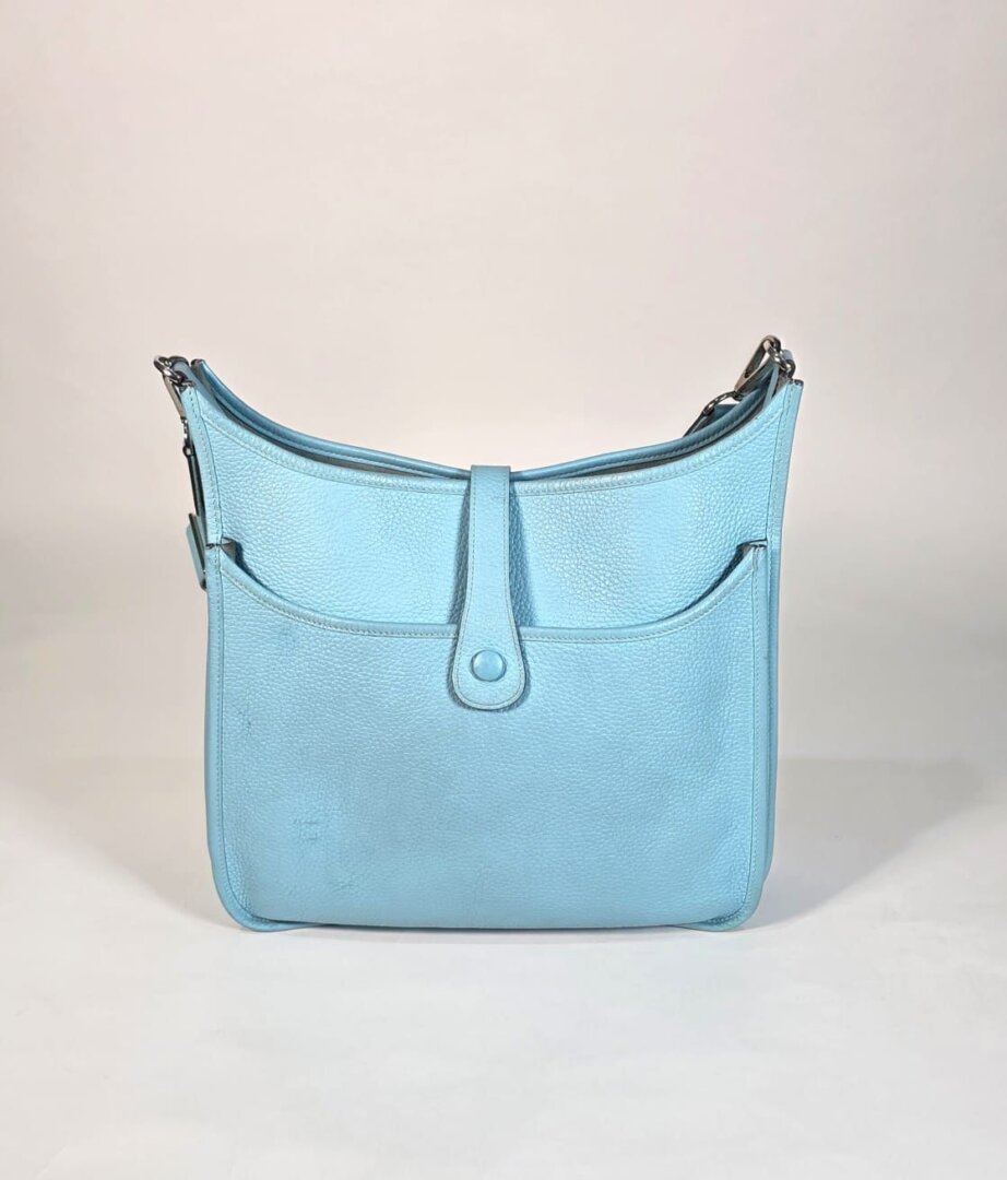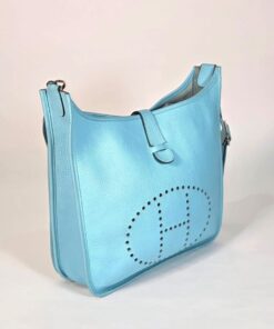 Description: Hermes Evelyne 33 Blue Leather Bag
