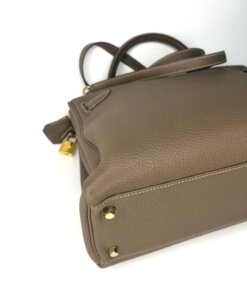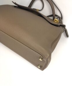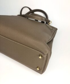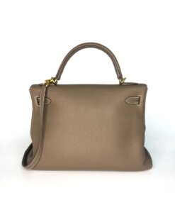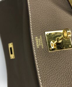 Elegant and timeless, the Hermes Kelly 32 Bag Togo leather is a luxurious statement piece. Featuring a leather strap and handle, silver-tone hardware, and a spacious interior with dedicated compartments, it offers both style and practicality. The clean and classic design is complemented by a hanging whip and Hermes lock charm. Opening up through a magnetic logo lock, this bag is perfect for any occasion.