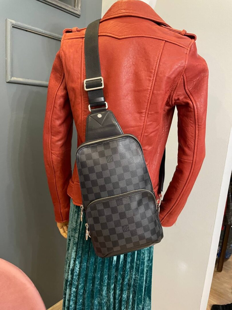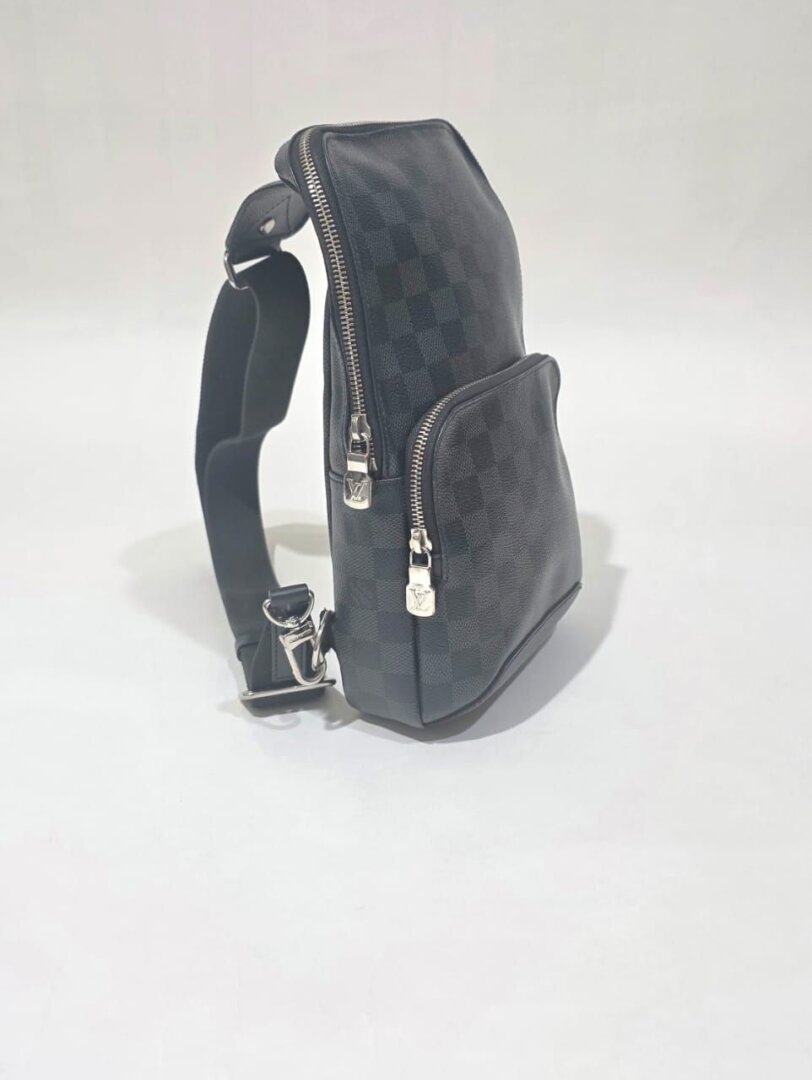 The highly popular Louis Vuitton Avenue Sling Bag in durable Damier Graphite Canvas. Perfect for modern, hands-free style.