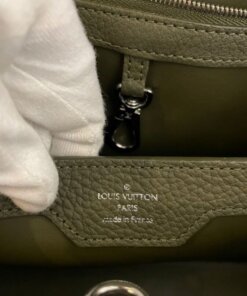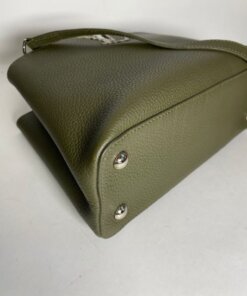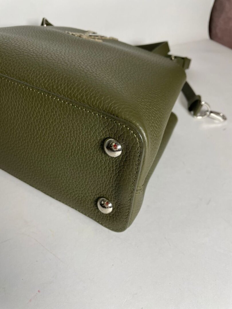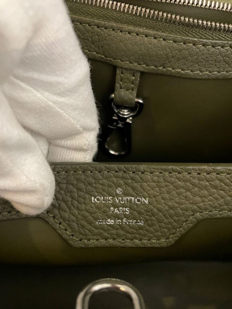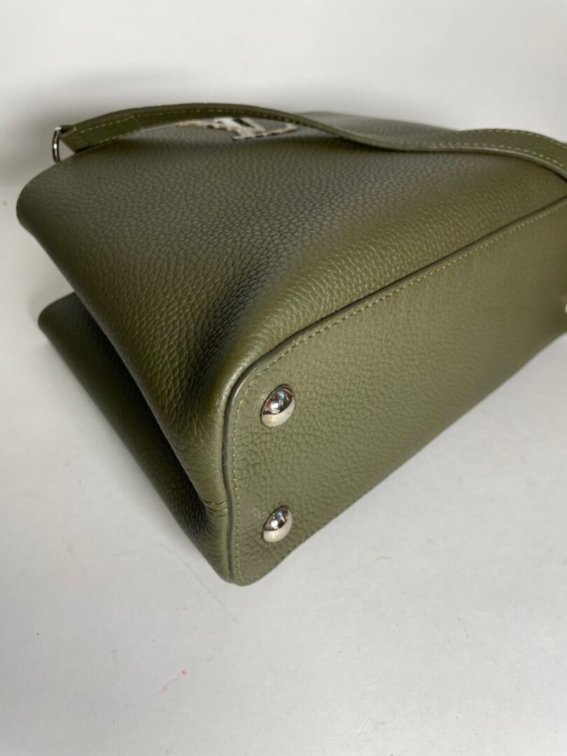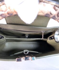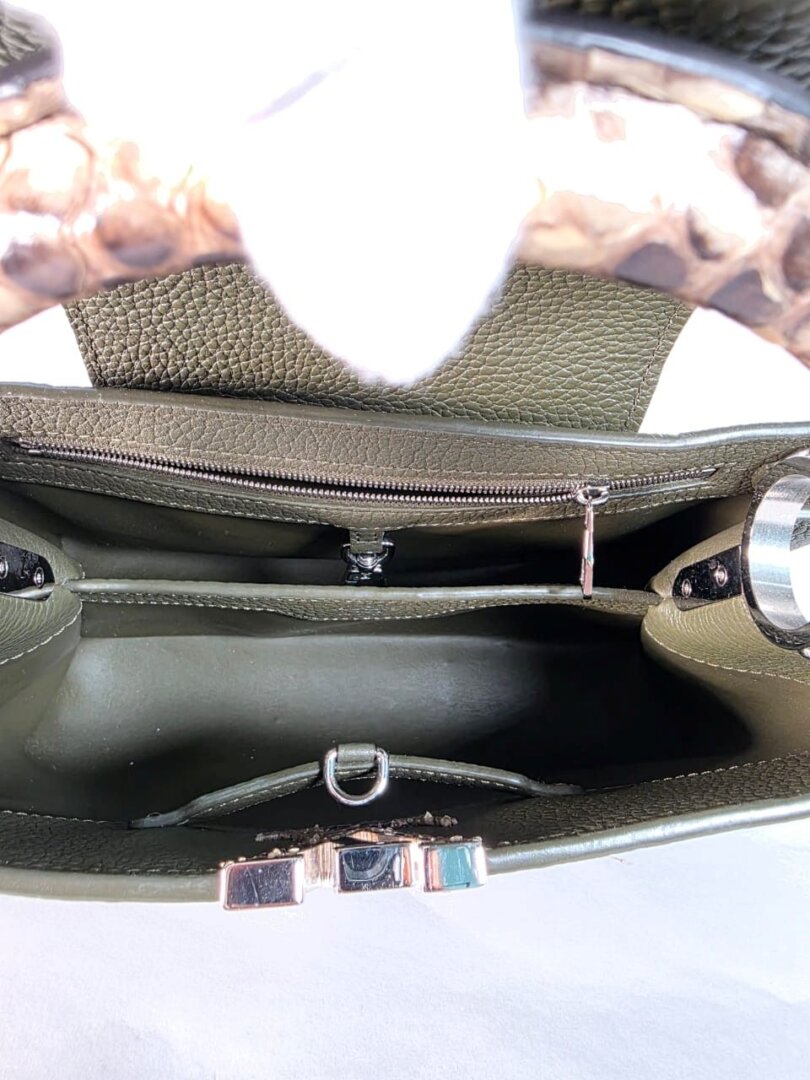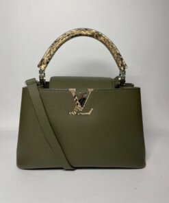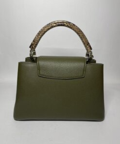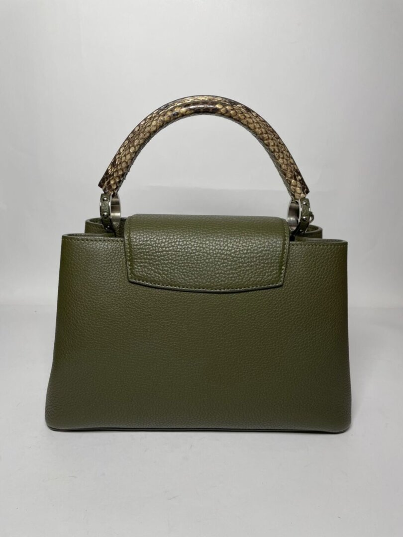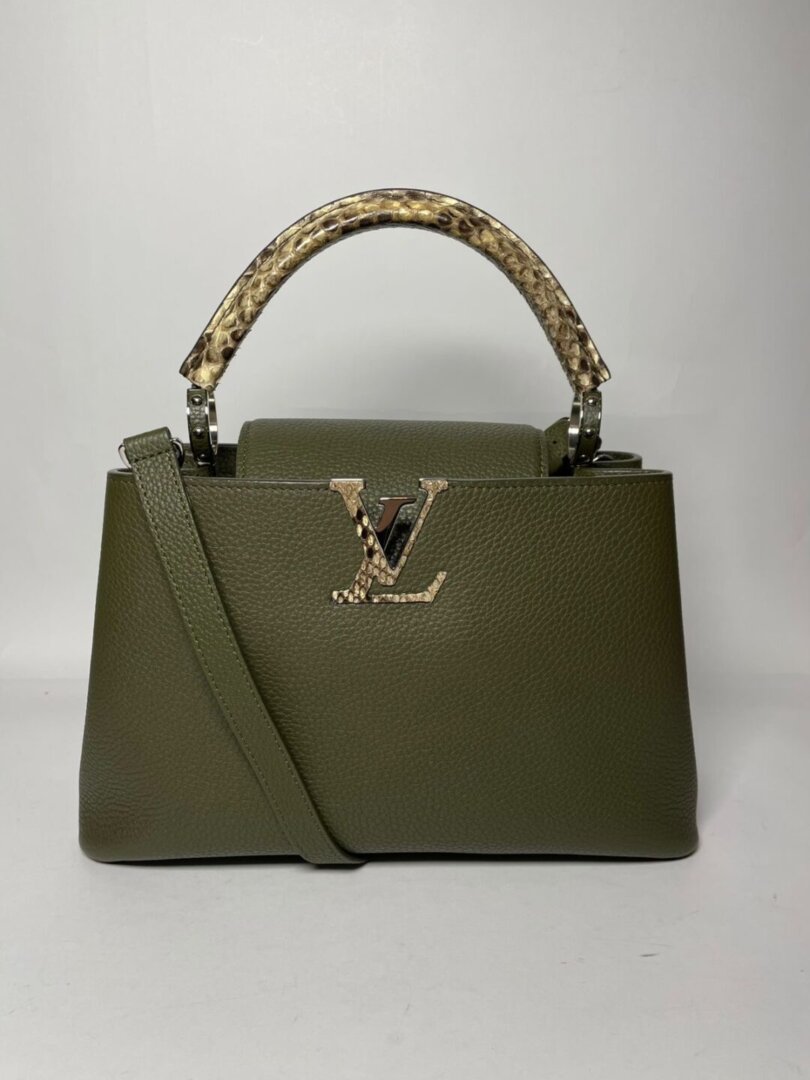 Description: Louis Vuitton Capucines Khaki/Olive Taurillon leather with python trim on the Lv monogram closing flap and python handle