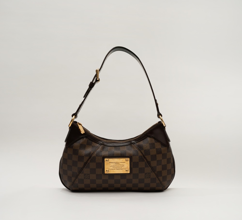 The versatile Louis Vuitton Thames PM Shoulder Bag in classic Damier Ebene Canvas. Perfect for everyday elegance and Authentic.