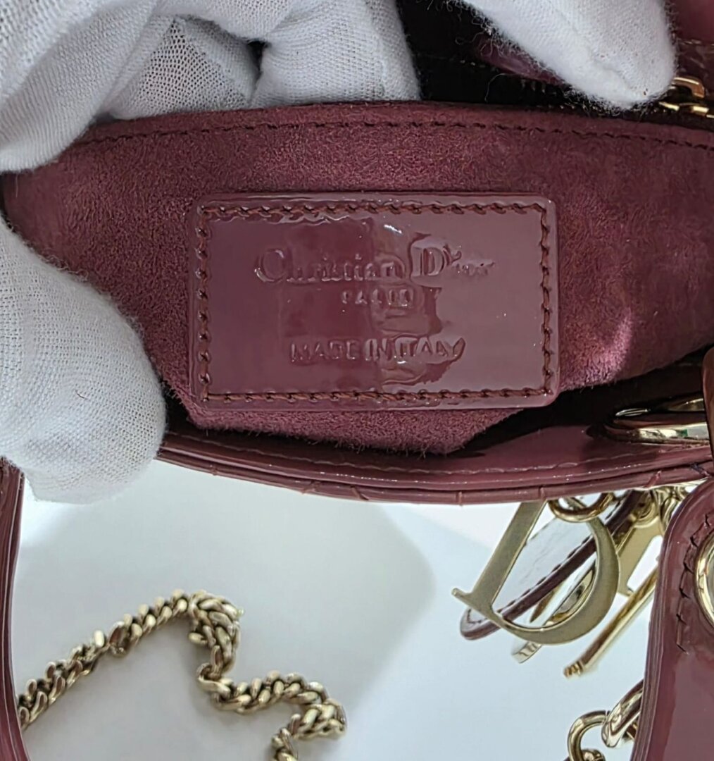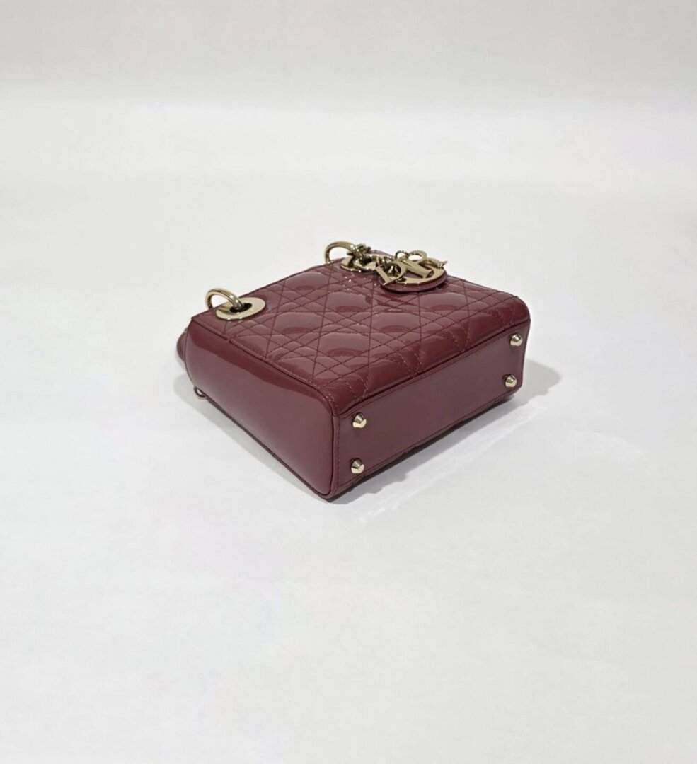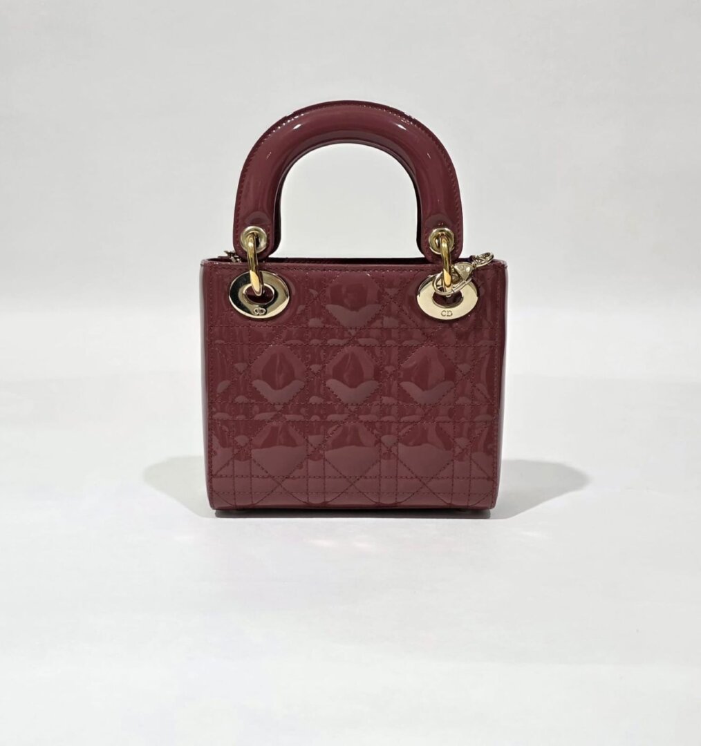 A stunning Dior mini bag crafted from glossy cherry red patent leather. This eye-catching piece features elegant structure, refined stitching, and sleek gold-tone hardware that enhances its vibrant color. Compact yet functional, the interior is perfectly sized for daily essentials, making it a chic choice for both day and evening wear. A striking, feminine accessory that adds a pop of luxury to any outfit.
