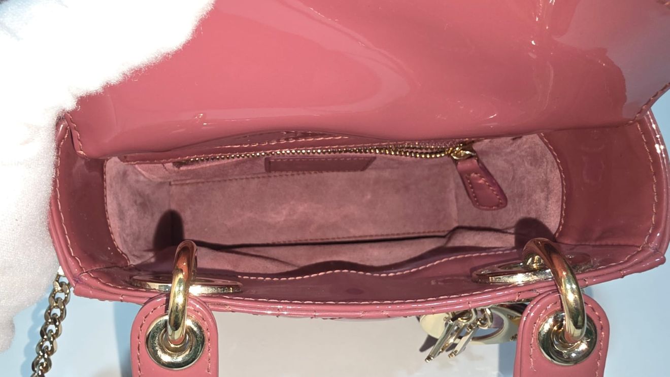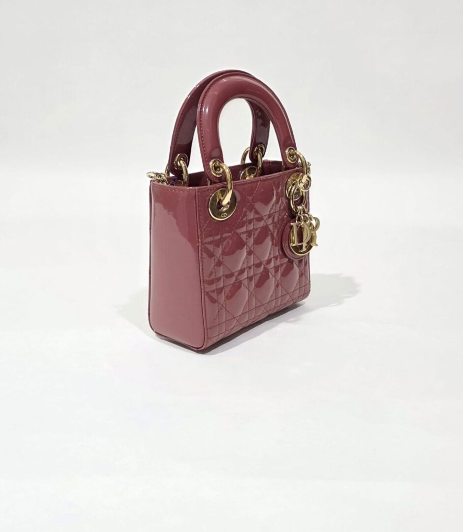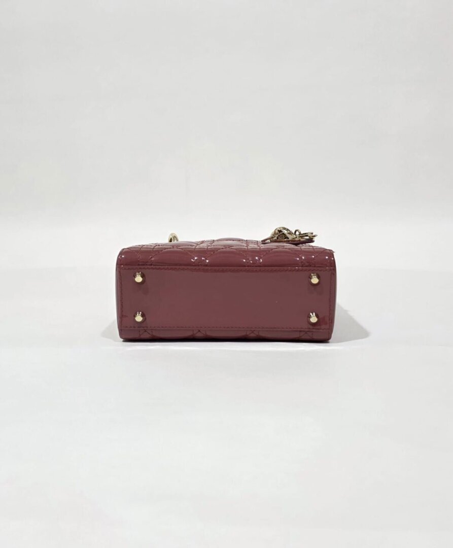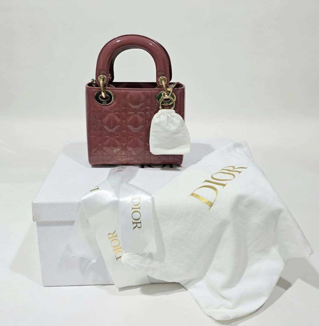 A stunning Dior mini bag crafted from glossy cherry red patent leather. This eye-catching piece features elegant structure, refined stitching, and sleek gold-tone hardware that enhances its vibrant color. Compact yet functional, the interior is perfectly sized for daily essentials, making it a chic choice for both day and evening wear. A striking, feminine accessory that adds a pop of luxury to any outfit.